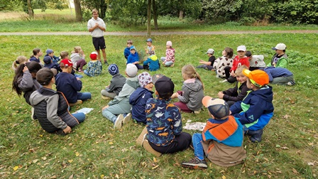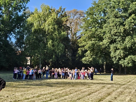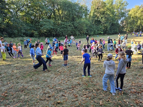 Diesmal waren die 1. und 2. Klassen im Stadtpark mit dem Kompass unterwegs, um die Team-Aufgaben in allen 4 Himmelsrichtungen zu lösen.