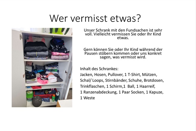 Hause zu lassen. In diesem Falle geben Sie bitte rechtzeitig in der Schule Bescheid. Der Unterricht findet grundsätzlich statt.