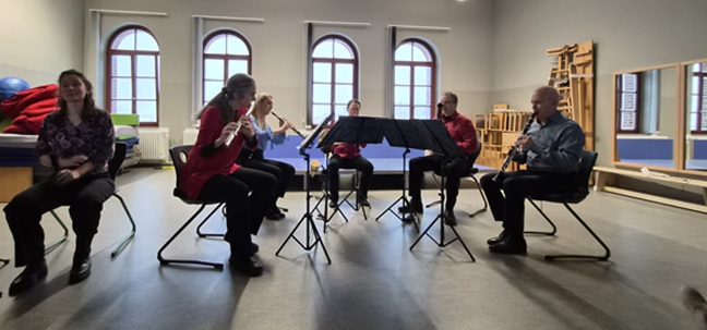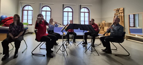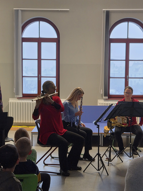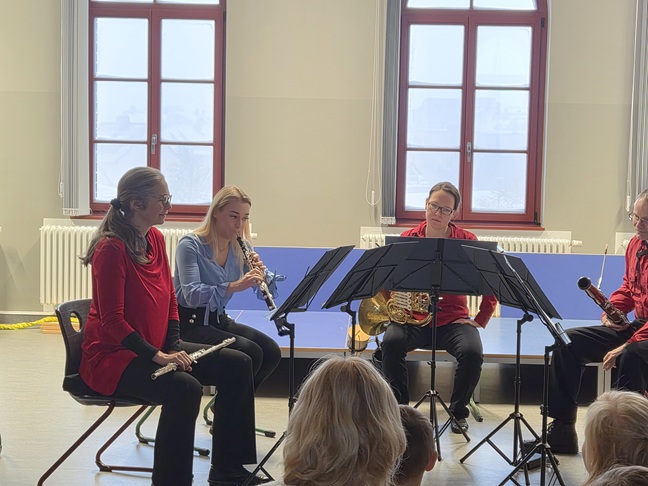 Bläserquintett. Fünf Musiker aus dem Gewandhausorchester fanden trotz Schneetreiben den Weg zu uns an die Schule und