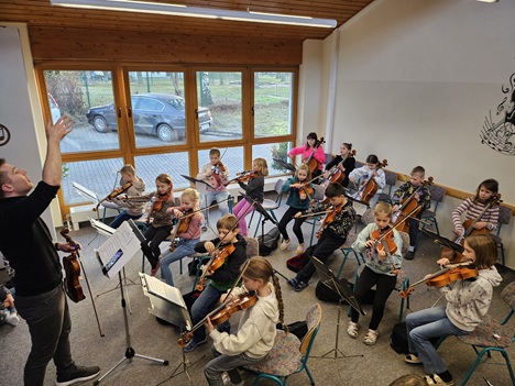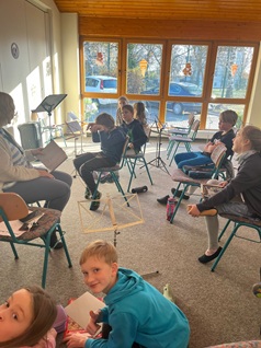 Heute erfreuten weihnachtliche Klänge das Schulhaus. Die Streicher der Klassen 3 und 4 spielten für alle Schüler und zwar absolut