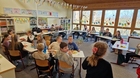 Ein frohes Osterfest und einen fleißigen Osterhasen wünscht allen Kindern und Eltern das Team der Grundschule Berg
