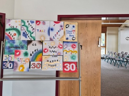 "Die Grundschule Berg wird heut 30 Jahr und allen war schon sehr lange klar, das wird gefeiert ein ganzes Jahr, drum waren heute viele